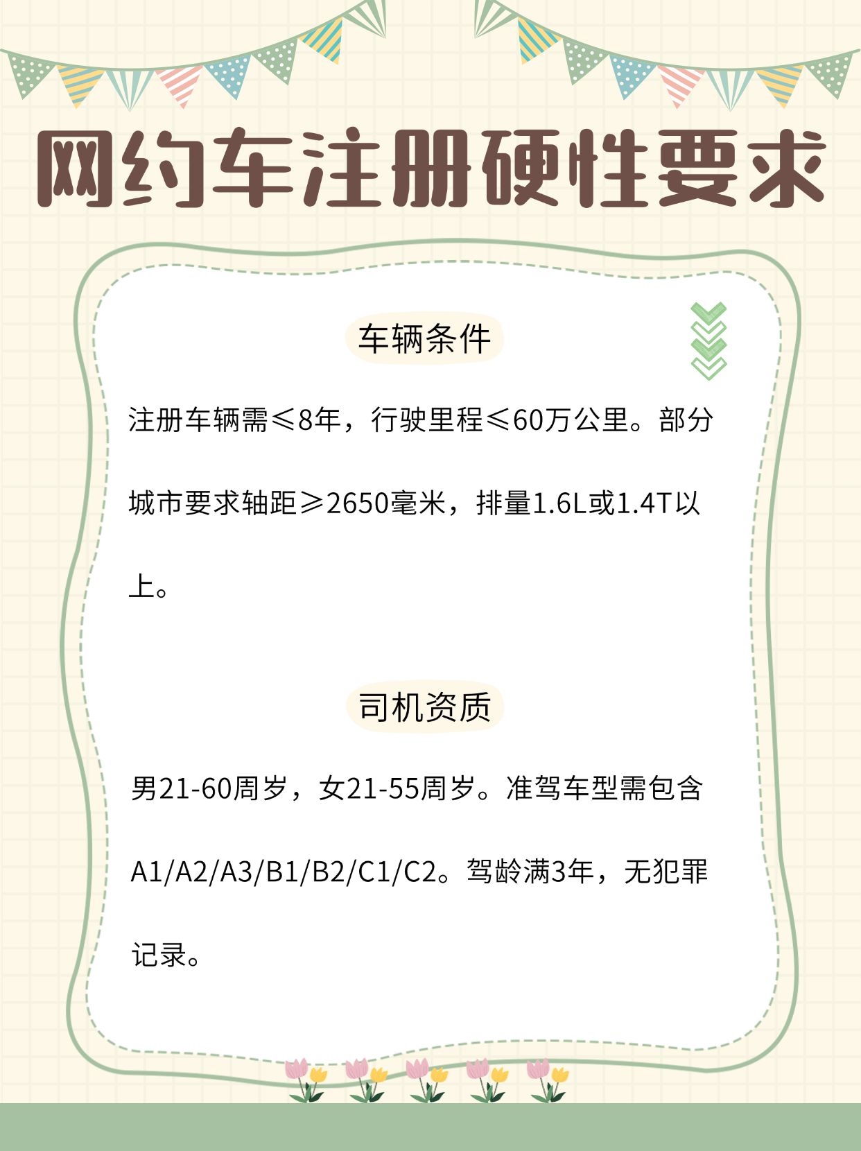注册网约车对车的要求注册网约车要求车辆为合法合规的七座及以下乘用车,具备本地牌照,车辆技术性能满足营运安全标准,车辆行驶里程不超过规定标准,并满足其他当地政策规定的车辆条件。具体要求可能因地区而异,建议咨询当地网约车平台或交通部门获取准确信息。... 2025-11-16 - [阅读全文]